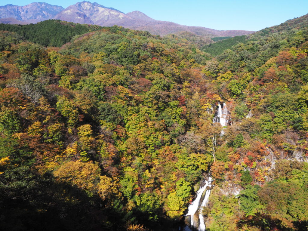 いろは坂の下の紅葉の様子も見てきました。 ◆霧降の滝 見頃に入っていました! 2段に分かれた滝の下段、右手の岸壁には黄色やツツジ類の赤色がかなり鮮やか。 今週末でも…