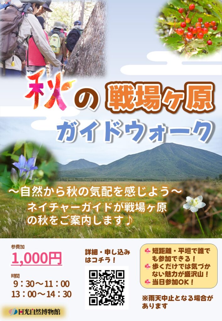 日光自然博物館では戦場ヶ原の秋をガイドの解説付きでお手頃お手軽に楽しめる戦場ヶ原秋のガイドウォークを開催しています。