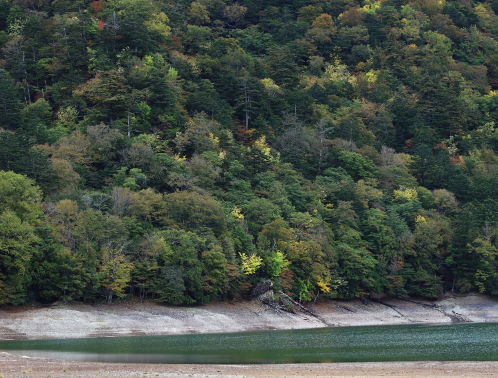 湖面に近いところでもまだこれから濃くなりそうですが色付きの気配は十分に出ています。