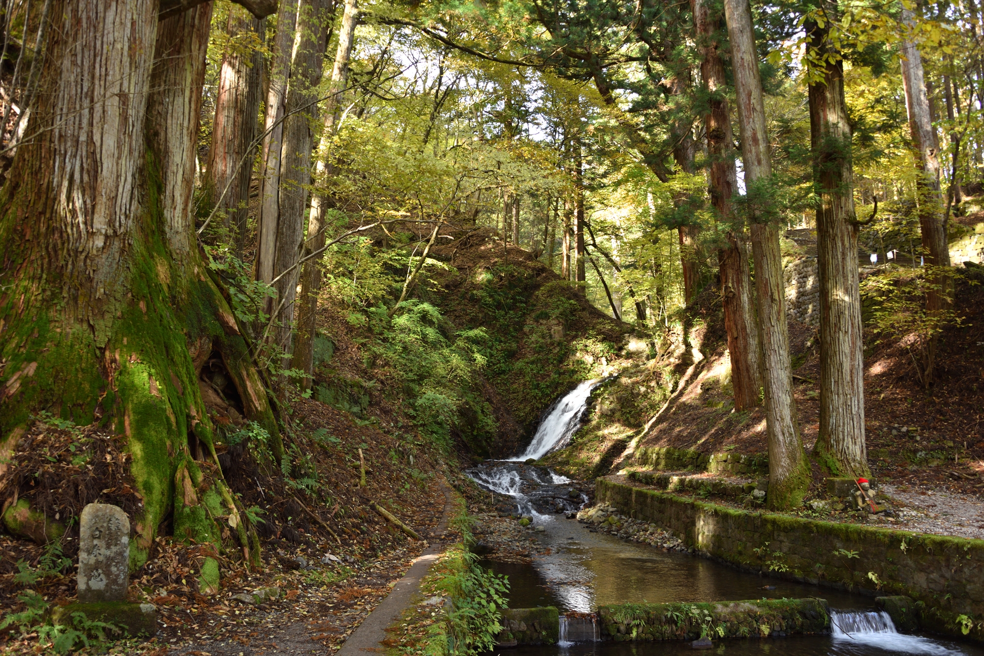 コースの途中、滝尾神社周辺では常緑の杉林の中を歩くのですが、ここはほとんど人気もなく、穴場的で静かな雰囲気を感じられます。