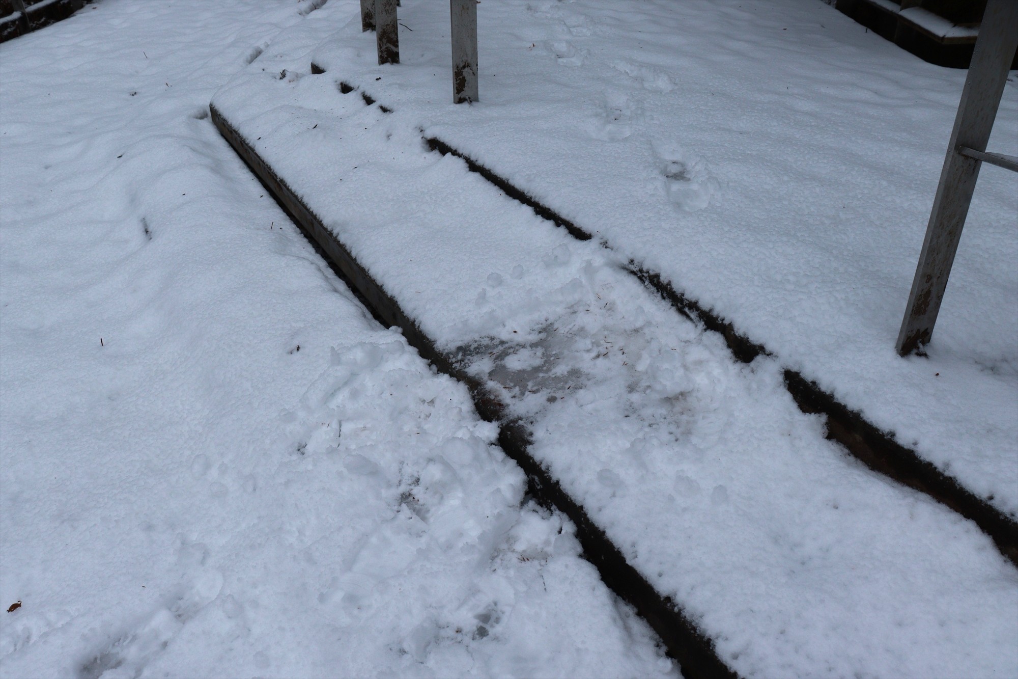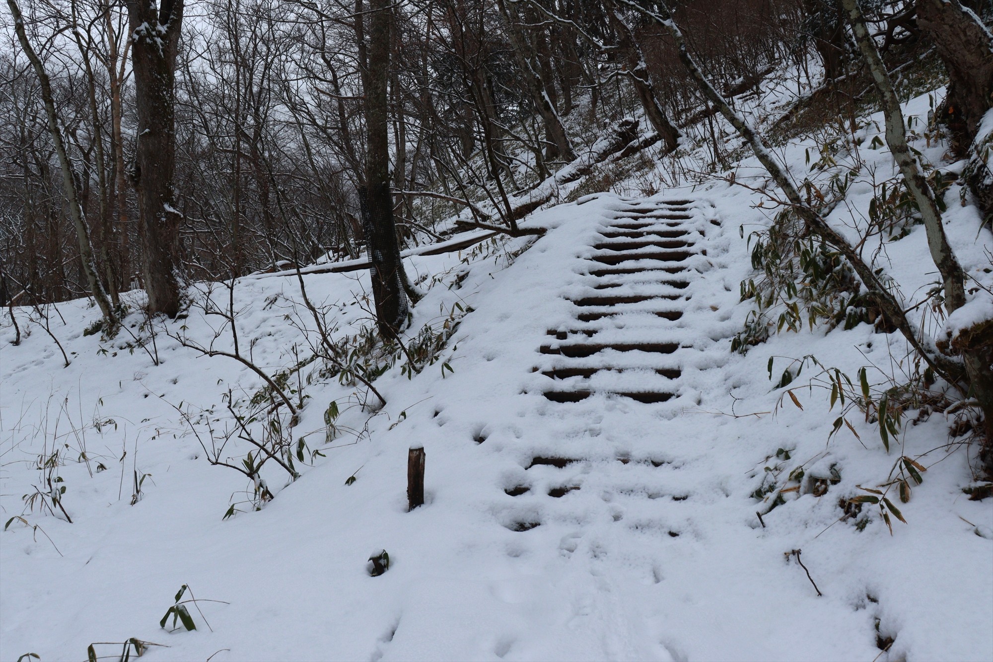 ただし、凍った雪の塊の上に、5センチほどの雪が乗っているような場所が多かったので、スノーブーツに滑り止め用のチェーンスパイクで歩くことをおすすめします。また、今後の積雪状況によりコースのコンディションは変わるため、お越しの際は直近の天気などをご確認ください。(渋)