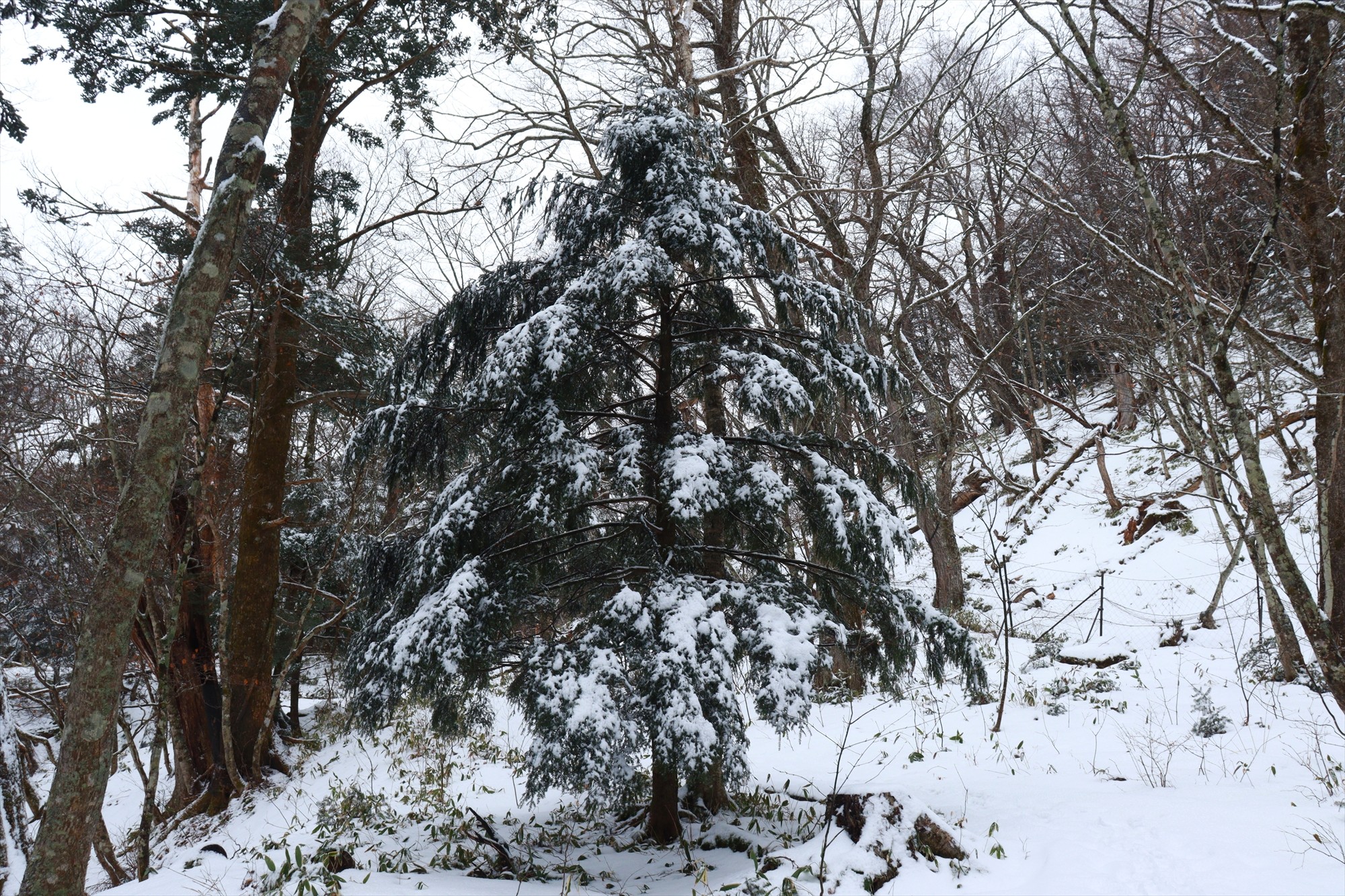 なぜかというと、雪の重みで針葉樹の枝がいつもより垂れ下がっていたんです。